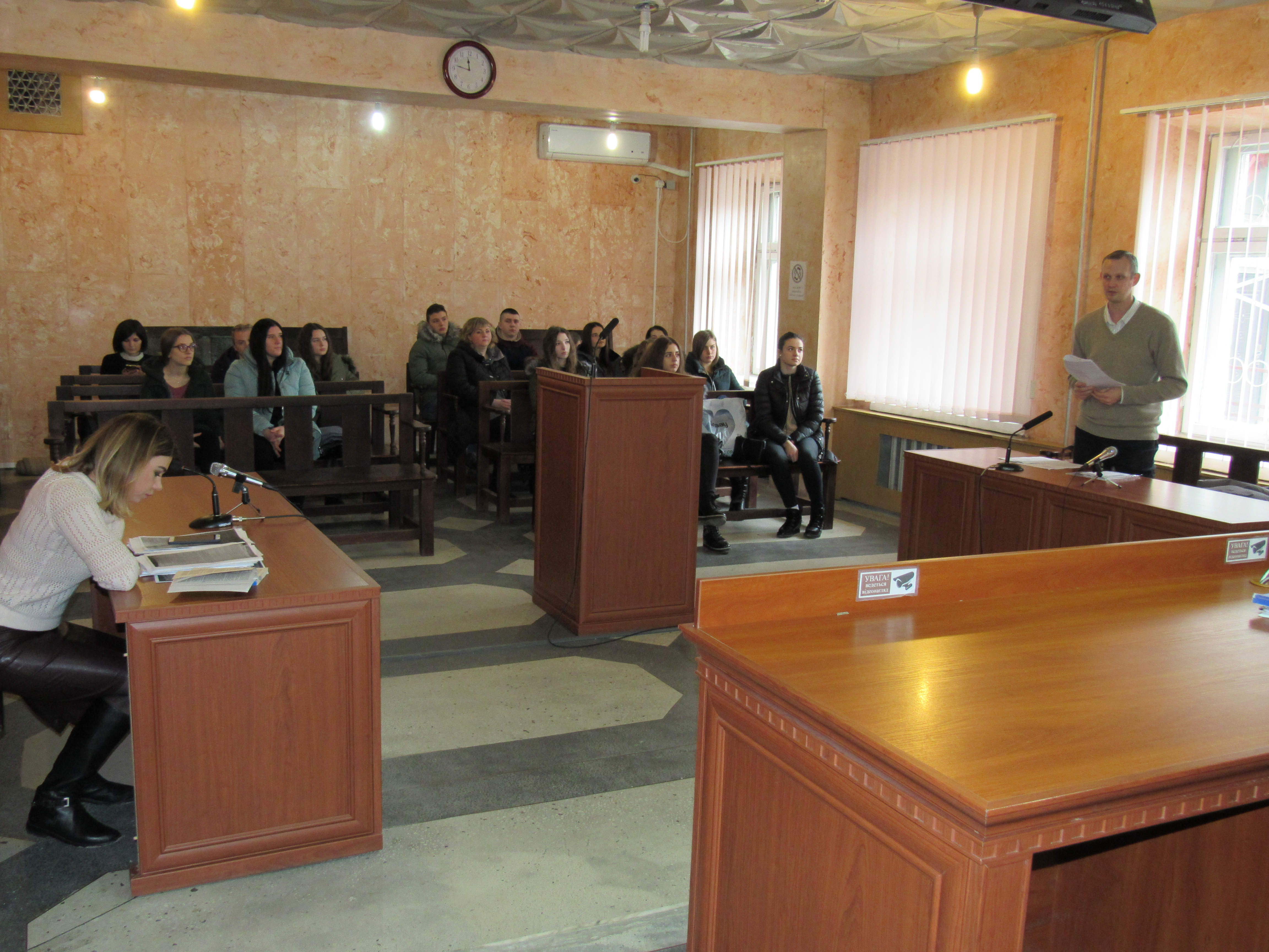 Студенти побували на кількох судових засіданнях, у ході яких розглядались матеріали адміністративних проваджень за різними статтями Кодексу України про адміністративні правопорушення, а також Митного кодексу України.